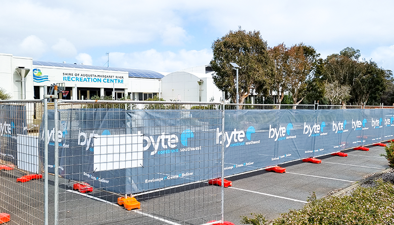 Fencing is now up to secure the site for the Contractor, BYTE Construct outside the Margaret River Recreation Centre, enabling them to commence works on the refurbishment.